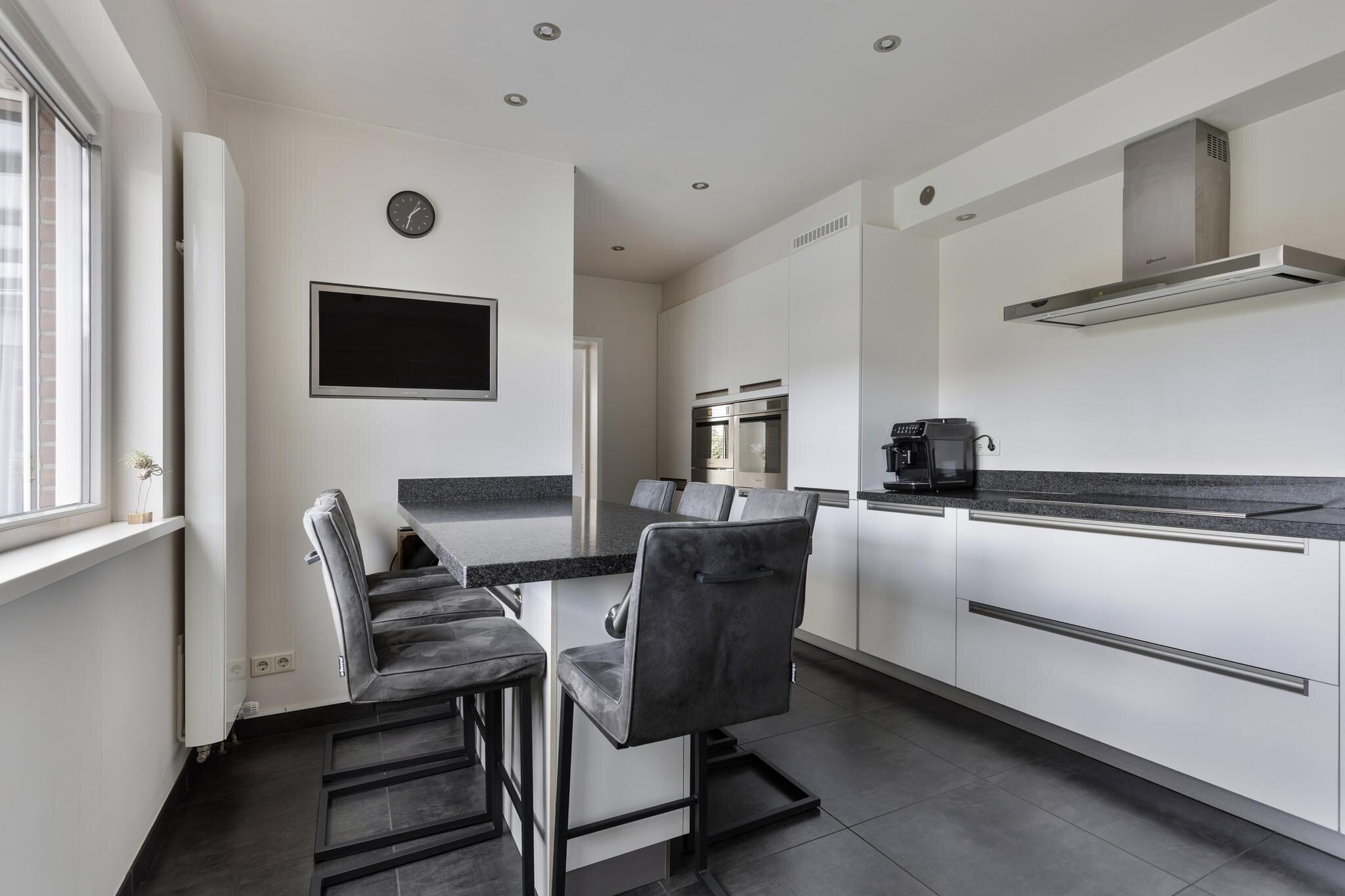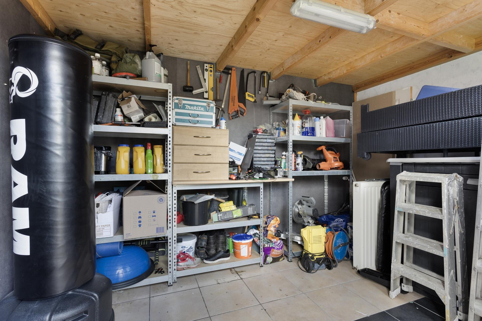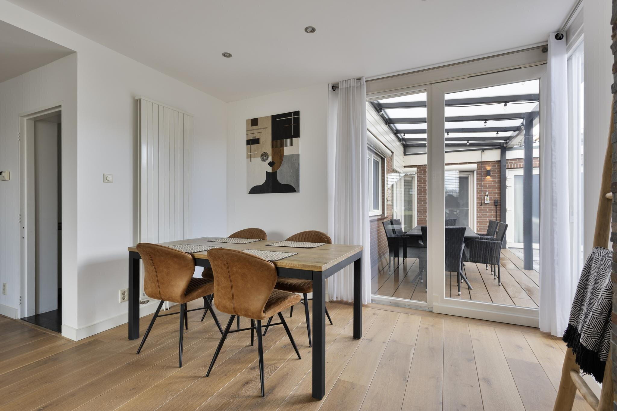 De ruime, lichte woonkamer is een heerlijke plek om te ontspannen. De houten vloer, strak gestucte wanden, een gashaard én een schuifpui naar de tuin zorgen voor een warme en luxe sfeer. De woonkamer staat in open verbinding met de moderne keuken, die werkelijk van alle gemakken is voorzien. Denk aan een inductiekookplaat, Quooker, oven, magnetron, koelkast, vaatwasser, bordenwarmer en zelfs een bar met tv – ideaal voor gezellige avonden! Vanuit de keuken loop je naar de gang met een praktische inbouwkast, een deur naar de tuin en toegang tot de masterbedroom, de badkamer en de berging met wasmachine- en drogeraansluiting.