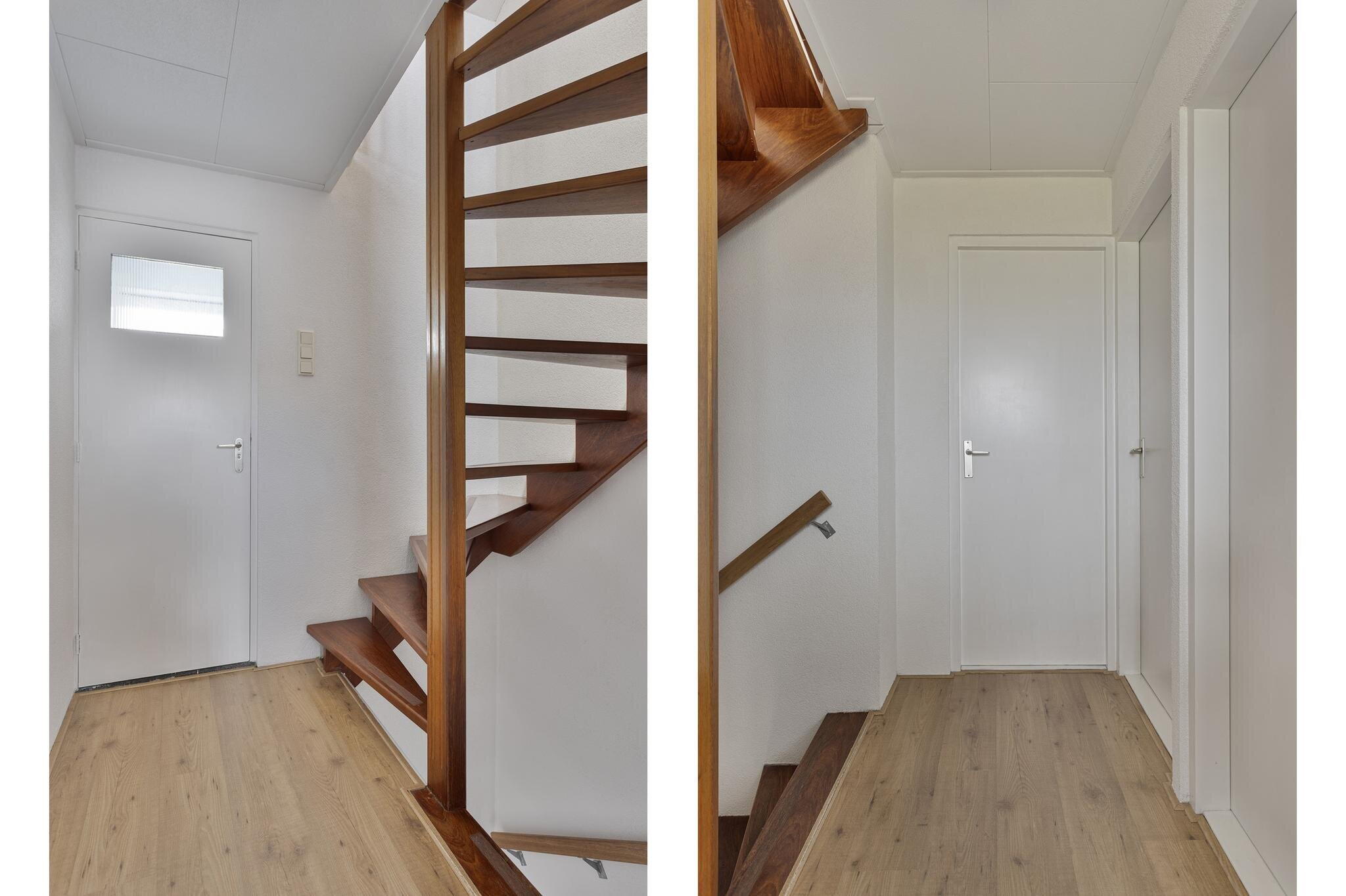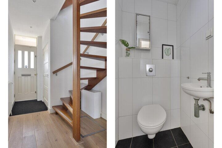 Parkeer je auto op de oprit of onder de carport en stap binnen in de ruime hal. Hier vind je het toilet, de trapopgang naar de eerste verdieping en toegang tot de sfeervolle woonkamer.
