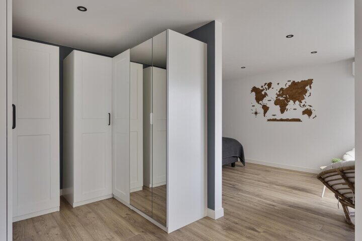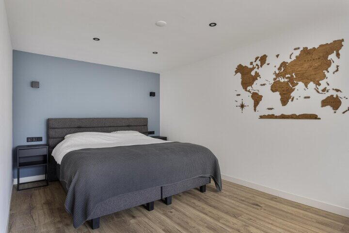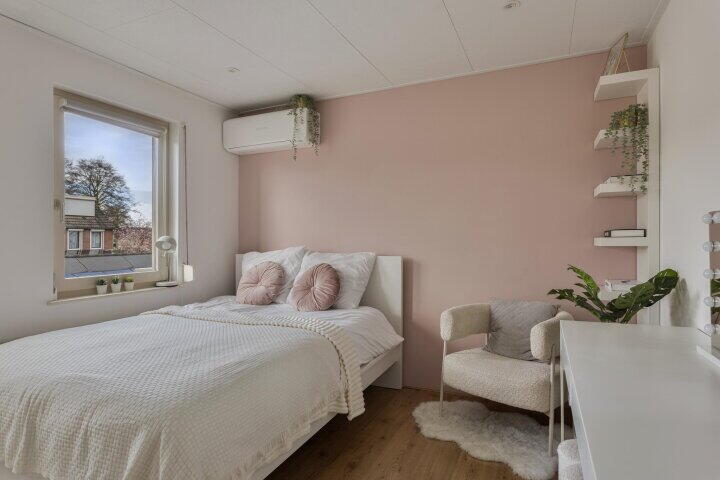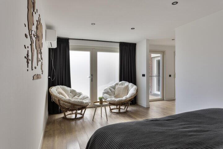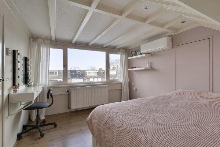 De woning beschikt over vijf slaapkamers, allemaal voorzien van airco! De grote masterbedroom op de begane grond is een oase van rust, licht en ruimte, met een fijne inloopkast. Op de eerste verdieping bevinden zich nog drie slaapkamers, waarvan één perfect is als werkkamer. De overige twee zijn heerlijk ruim en licht. De tweede verdieping biedt een ruime vijfde slaapkamer, ideaal als logeerkamer of extra werkruimte. De badkamers zijn modern en netjes. Op de begane grond vind je een luxe badkamer met ligbad, inloopdouche, wastafel en toilet. Op de eerste verdieping vind je een tweede, compacte badkamer met inloopdouche en wastafel. De tweede verdieping bereik je via een vaste trap.